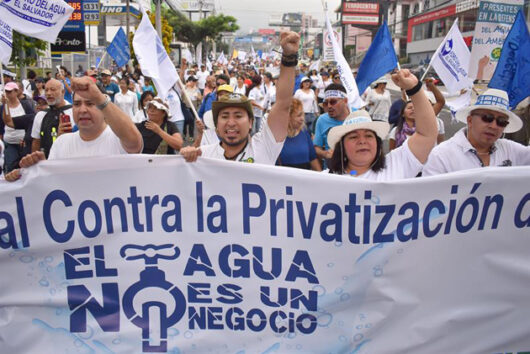 En la masiva marcha del pasado 17 de octubre, la no privatización del agua fue de las demandas principales. Ojalá las diversas organizaciones populares se juntaran en estos días para protestar en la Asamblea Legislativa; y ojalá que también aquéllas que defienden “la democracia y separación de poderes” exigieran una ley no privatizadora del agua.