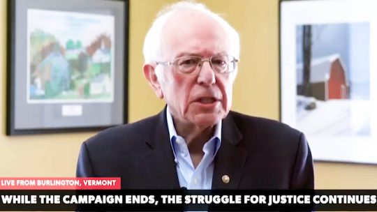Sanders se dirigió a sus partidarios en una transmisión en vivo desde su casa en Burlington, Vermont.