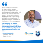 “Rising healthcare costs driven by wage inflation, specialty drugs and investments in new technology, are forcing medical and hospital bills to record levels. The workers’ compensation industry has typically been subject to cost shifting by providers because of low reimbursement from Medicare, Medicaid, and Commercial payors. The addition of the talented team, and industry leading cost containment programs from ACRS, to the Carisk family will positively impact our clients’ efforts in this area,” said Joseph Berardo, Jr, Carisk Partners Chairman and CEO.