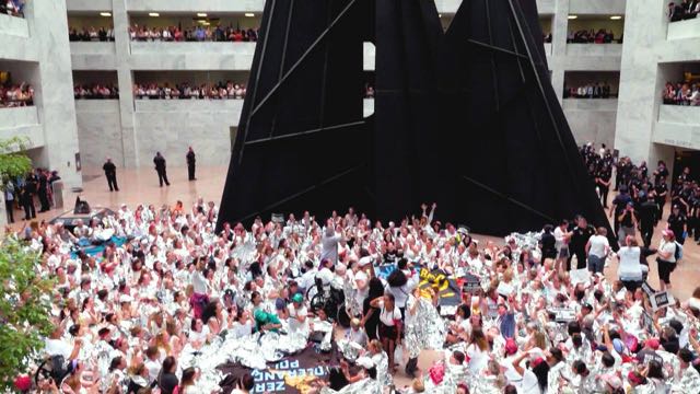 En Washington DC, casi 600 mujeres fueron arrestadas el jueves durante una acción masiva de desobediencia civil no violenta en el Capitolio, en protesta por las políticas en materia de inmigración implementadas por el gobierno del presidente de Estados Unidos, Donald Trump.
