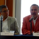 El embajador de Nicaragua, Francisco Campbell (de saco y lentes) y el cónsul general de Venezuela en New Orleans, Jesús Alberto García. Junto a otros panelistas. Foto Ramón Jiménez.