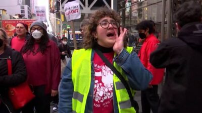 Cientos de trabajadores del periódico The New York Times llevaron a cabo una huelga de un día de duración el jueves y se congregaron junto a sus simpatizantes en el centro de Manhattan, en el área de Times Square, para exigir que los gerentes del periódico acepten un nuevo contrato colectivo, luego de más de un año y medio de negociaciones sindicales.