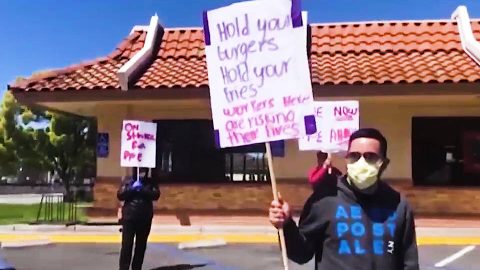 En California, cientos de trabajadores en 30 restaurantes de comida rápida están en huelga este jueves para exigir equipos de protección personal y licencia por enfermedad remunerada. Estas son las palabras de Irving Gaza, un empleado de McDonald’s en la ciudad de San José, quien se unió a una huelga a principios de esta semana.