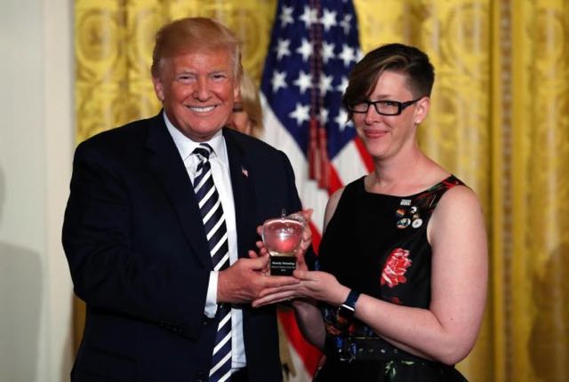 Mientras miles de docentes de varios estados del país se encuentran en huelga en reclamo de salarios justos y financiamiento adecuado para sus escuelas, una maestra, Mandy Manning, fue invitada a la Casa Blanca la semana pasada para recibir de manos del presidente Donald Trump el Premio 2018 a “Docente del año”.