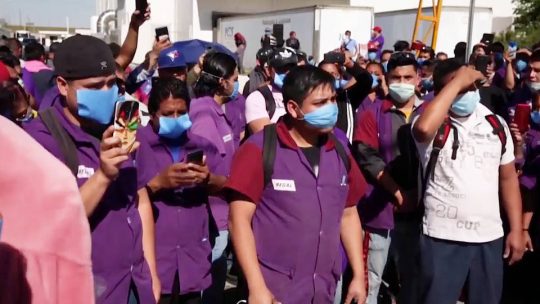 También en México, decenas de trabajadores de una planta de ensamblaje en Ciudad Juárez, propiedad de la empresa estadounidense Regal, realizaron una protesta el miércoles para exigir el cierre de la planta por preocupaciones relacionadas con la falta de medidas de protección adecuadas. La protesta se produjo tras la muerte de un empleado que presentó síntomas de COVID-19. Estas son las palabras de la operaria Isabel Flores.