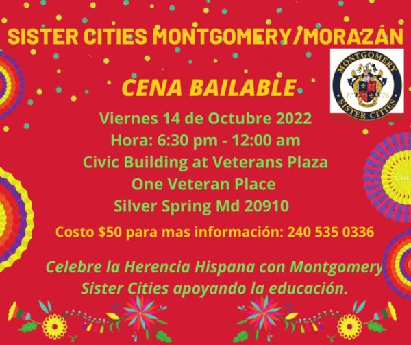Con ocasión de celebrarse el Mes de la Herencia Hispana en Estados Unidos —entre el 15 de septiembre y el 15 de octubre de cada año— y para estrechar más esas relaciones entre las dos jurisdicciones, el Comité Sister Cities Montgomery/Morazán, ha organizado una Cena Bailable.