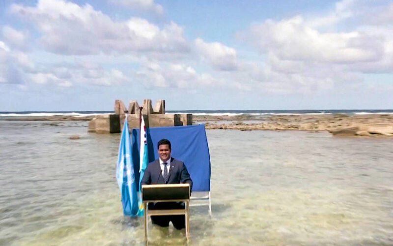En otras noticias de la COP26, el ministro de Relaciones Exteriores de Tuvalu (un conjunto de islas en el Pacífico Sur) grabó un discurso para los delegados de la cumbre, que pronunció mientras estaba sumergido hasta las rodillas en el agua del mar, para resaltar cómo el país insular de baja altitud ubicado en el Pacífico se enfrenta a un peligro inminente por el aumento del nivel del mar.