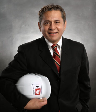 En plena campaña, Santiago Távara, lleva puesto el simbólico casco blanco. Foto cortesía
