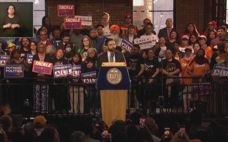 Alcalde Zohran Mamdani: “Y tal y como dije aquella gélida tarde de enero ante más de ocho millones y medio de neoyorquinos, no vamos a disculparnos por nuestras convicciones. Fui elegido como socialista demócrata y gobernaré como socialista demócrata”.